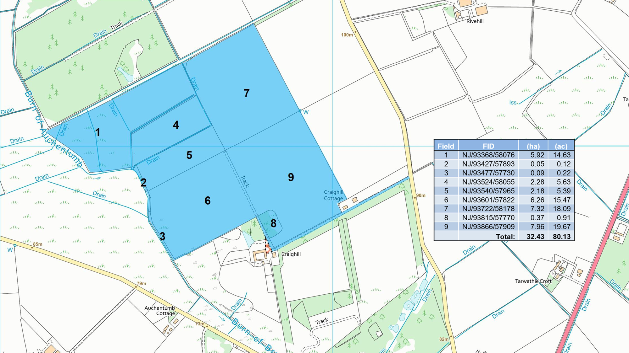 Enjoying a rural setting in the heart of Aberdeenshire, this block of agricultural land is ideally suited to agricultural and rural activities. The IACS registered land comprises of nine field parcels extending to 32.43 hectares (80.13 acres) or thereby and is predominantly classified as Grade 3(2) with small areas of 4(1) and 4(2) by the James Hutton Institute for soil research.